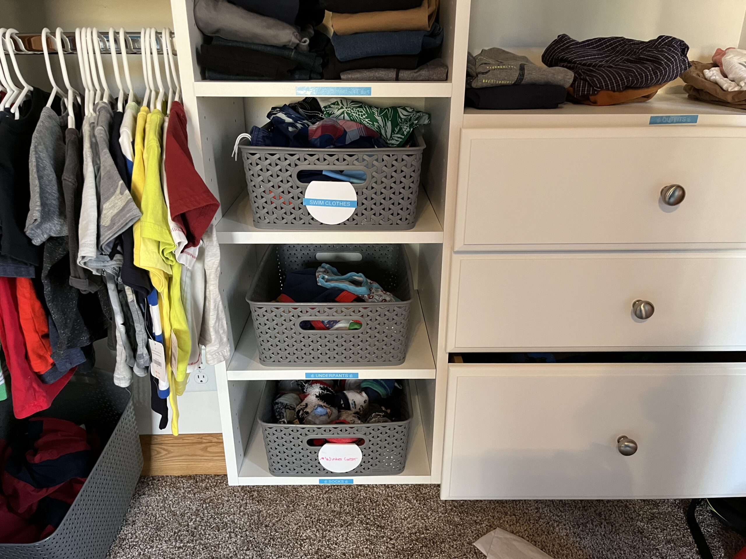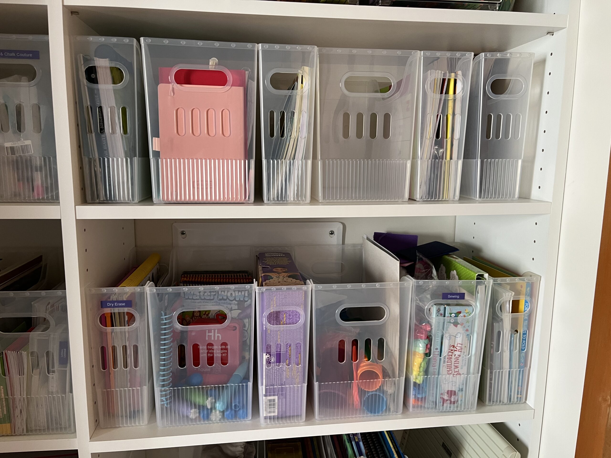 - The bins are clear, which makes it easier to see what's inside of bins I don't access very often.